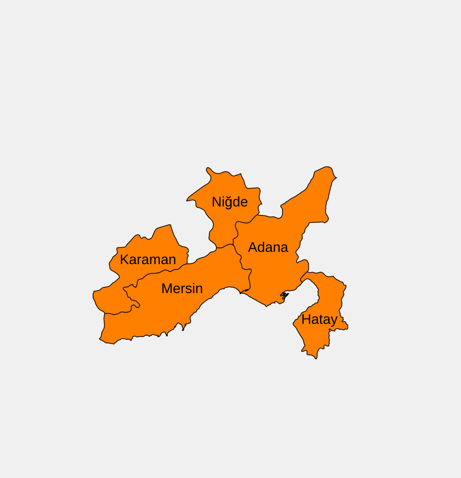 -Adana -Hatay -Karaman -Mersin -Niğde