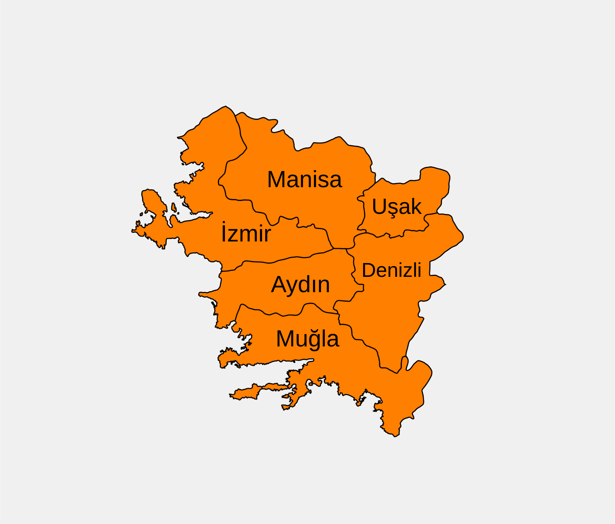 -İzmir -Aydın -Denizli -Manisa -Muğla -Uşak