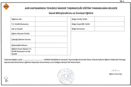 ADR 1.3 TEHLİKELİ MADDE EĞİTİMİ